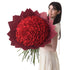 Design Aesthetic: A dramatic red bloom dome contrasted with soft neutral wrapping for a refined yet powerful presence