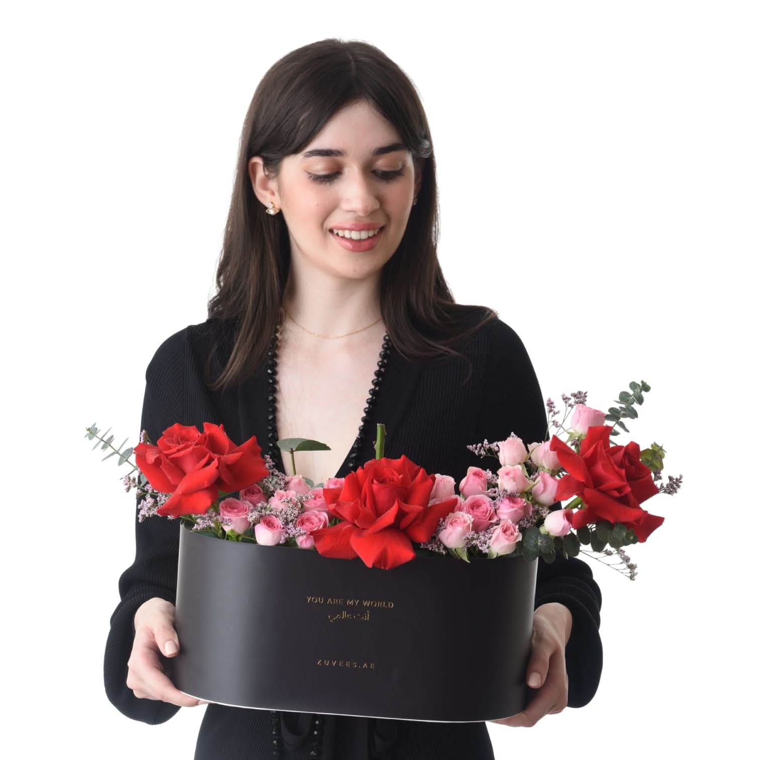 Combo Of Love with Experiences Gift is a refined Valentine’s Day expression that celebrates love through both beauty and shared moments, featuring 3 Red Roses, 1 White Hydrangea, 3 Red Spray Roses, and 5 Eucalyptus arranged in a graceful, romantic composition. Presented in a large oval “In My Heart… Always” box written in Arabic, this elegant floral arrangement is paired with a WonderGifts experience voucher, transforming the gesture into a lasting memory that goes beyond flowers alone. Thoughtfully curated, this gift is designed to honour connection, intimacy, and time spent together.