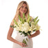 Floral Composition: 3 White Hydrangeas, 5 White Roses, 5 White Spray Roses, 3 White Lilies, 10 Ruscus, 5 Eucalyptus