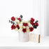Floral Composition: 10 Red Roses, 10 White Roses, 9 White Carnations, 4 Black Eucalyptus